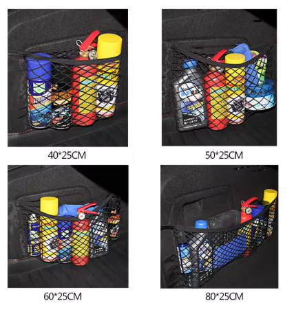 רשת אחסון גמישה לתא המטען או לגב המושב, לשמירה על סדר וארגון ברכב.